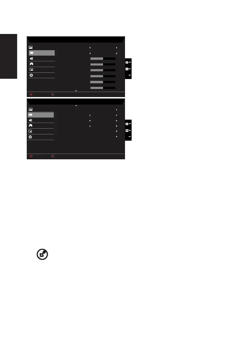 2. Toggle the joystick to the up or down to select Color from the OSD.Then toggle to the