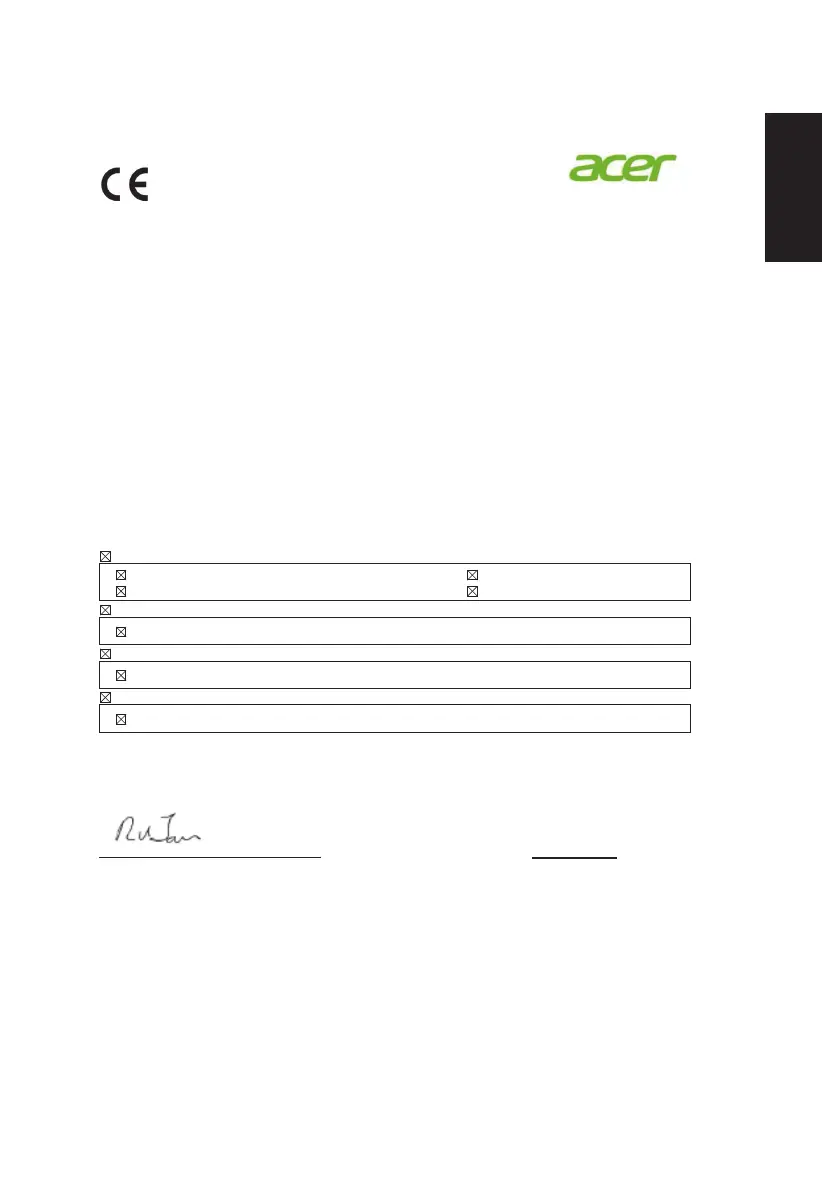 We, Acer Incorporated, hereby declare under our sole responsibility that the product described above is in