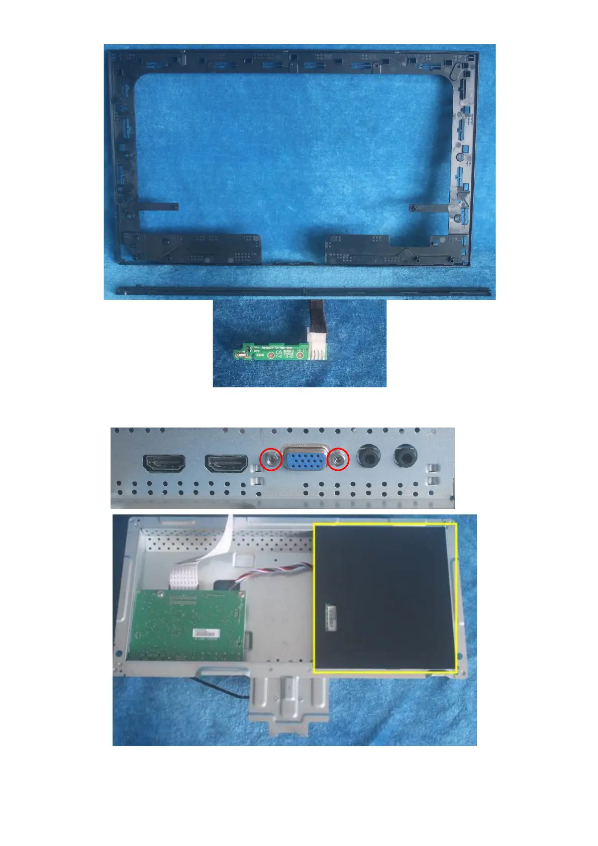 S6. Unscrew the screw of the main board, remove the mylar. Then unscrew the screws of the power board and main