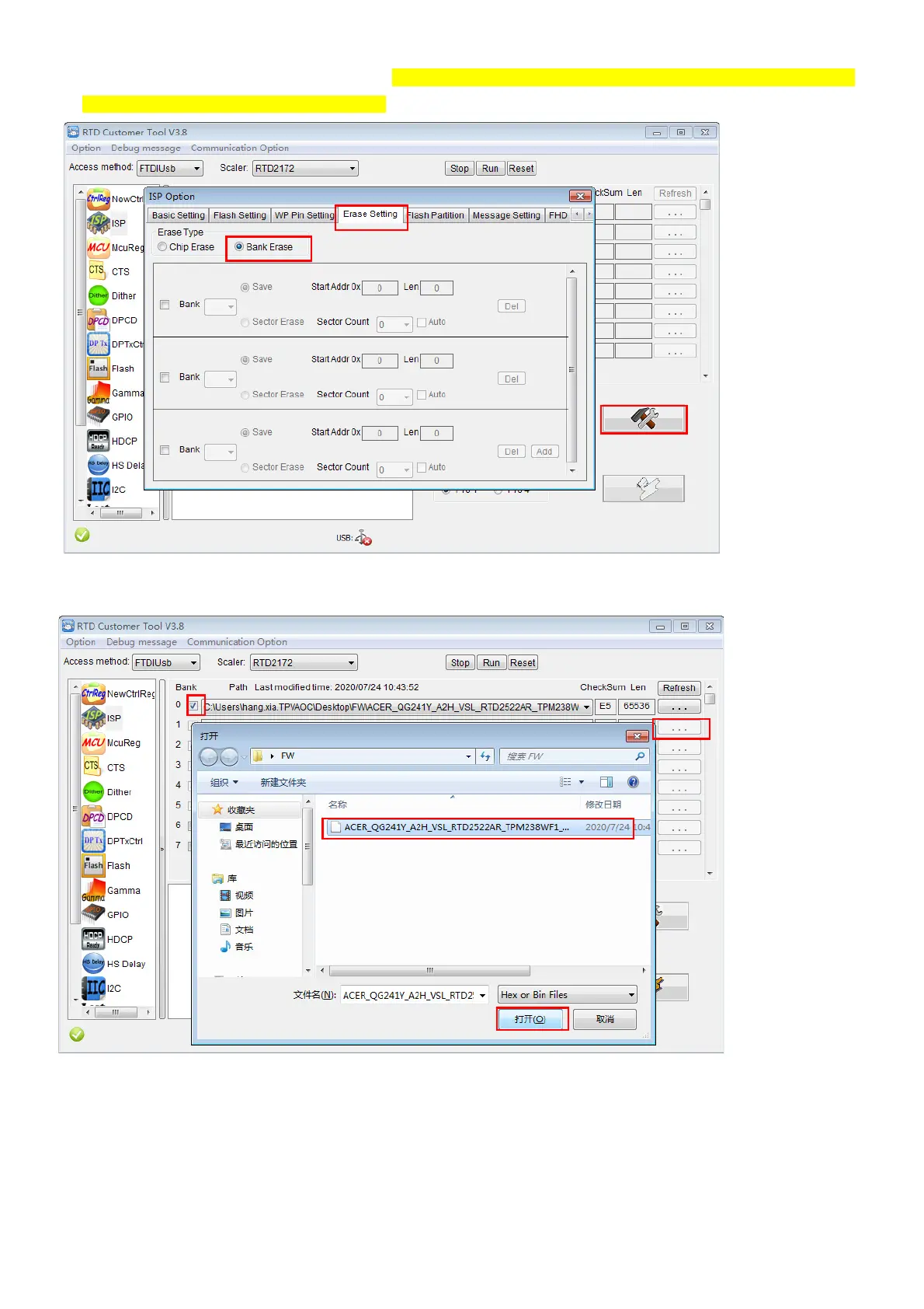 3.4 Close the “ISP Option” window and click the “BigBin” to load the correct F/W.
