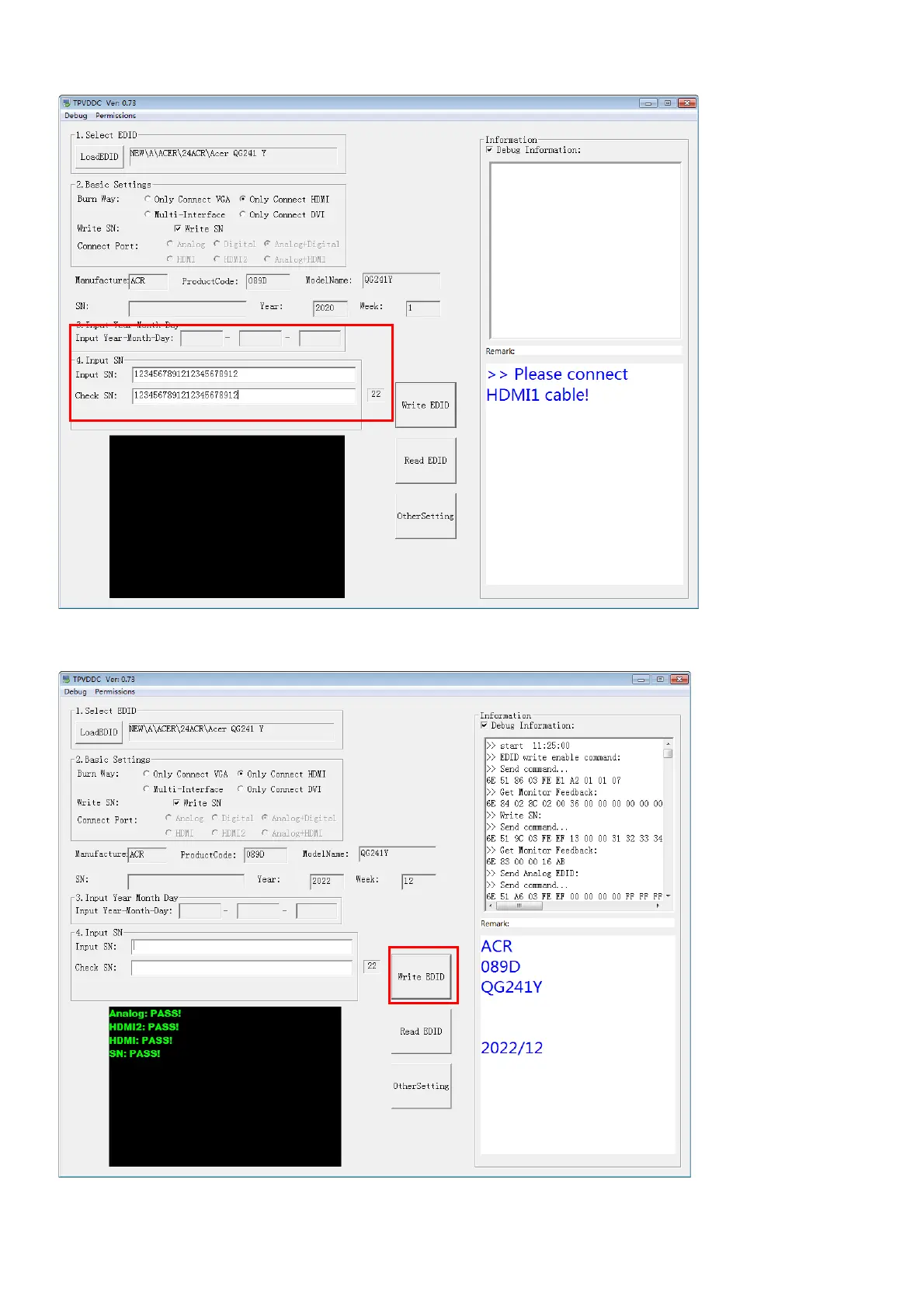 4.7. Click “write EDID” to start writing. When The green “PASS” appear, the process is finished.