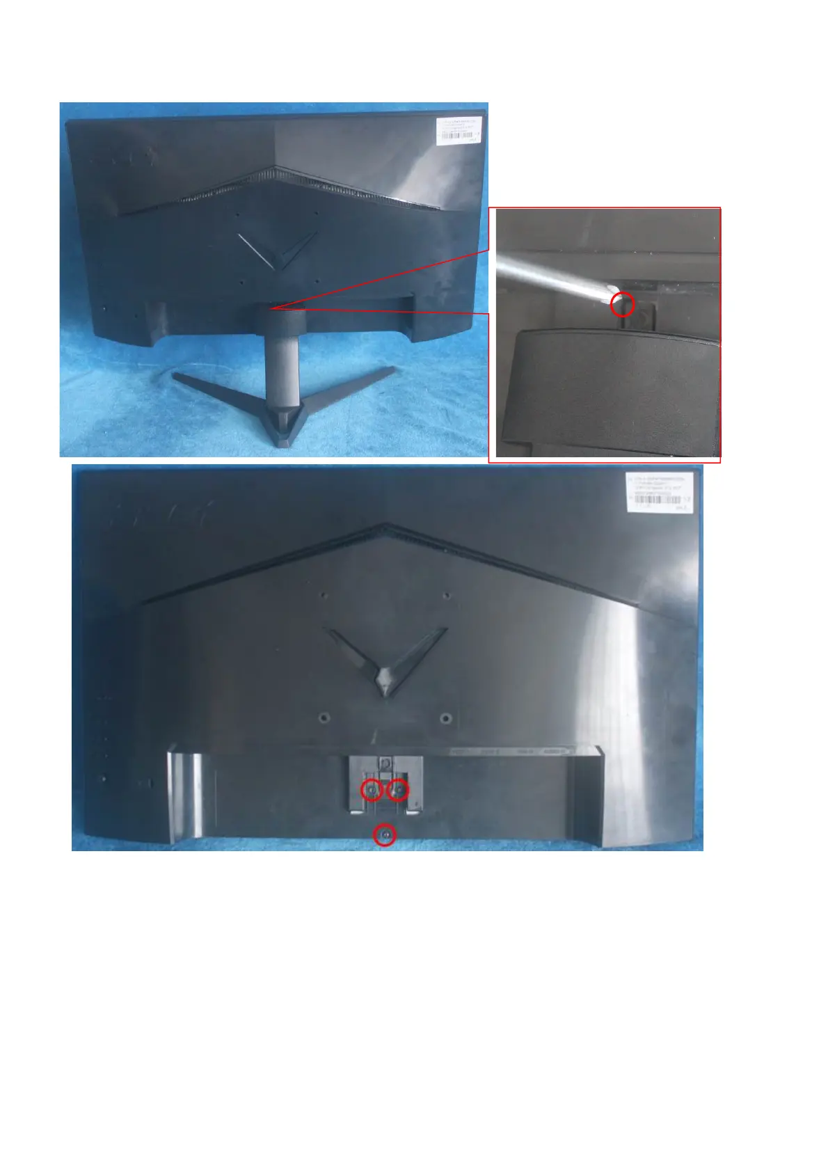 S1. Push the button to remove the stand –base ASS’Y and unscrew the screws on rear cover.