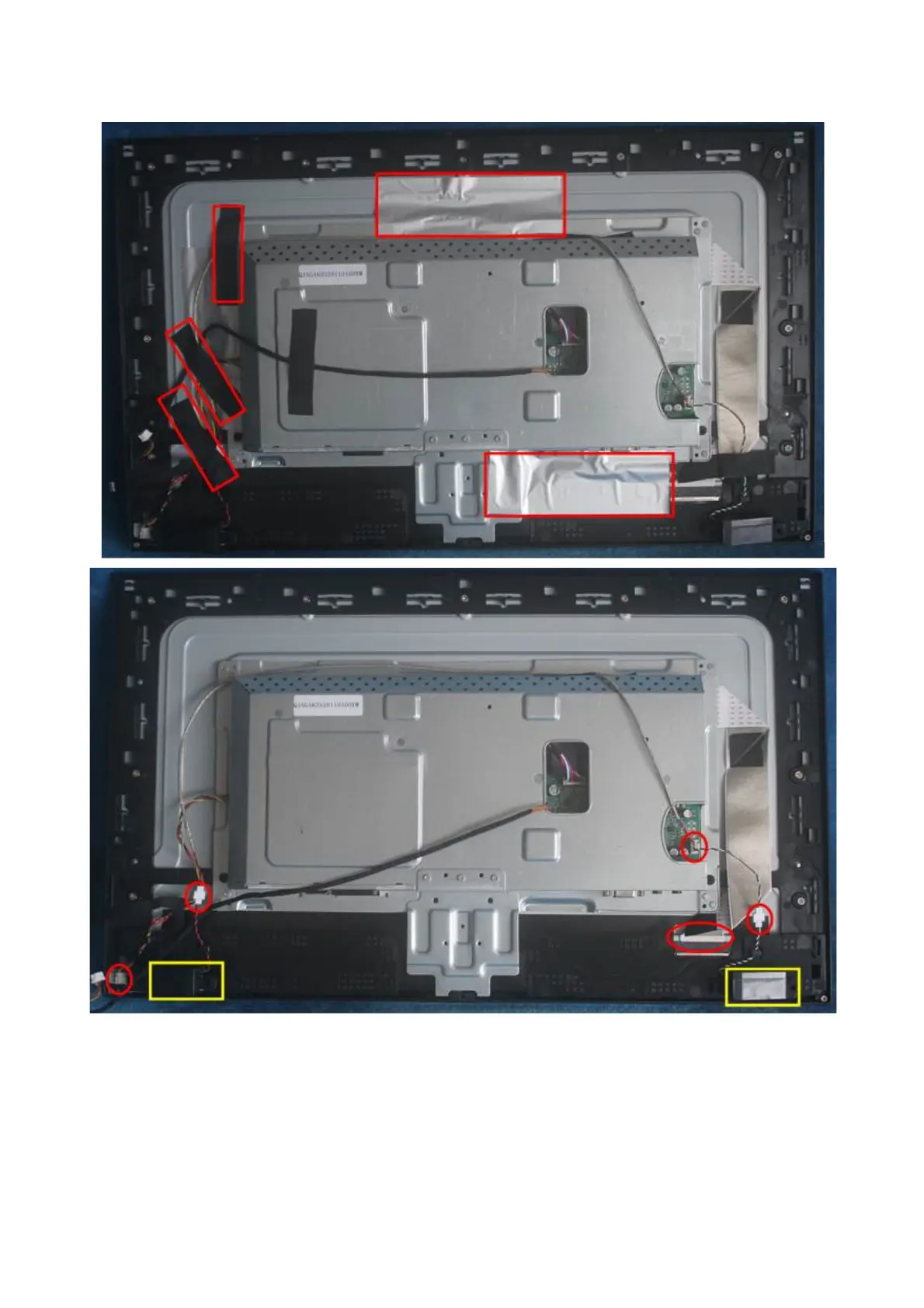 S4. Tear up all tapes and disconnect the cables (main board to panel), the cable (power board to panel). Remove the