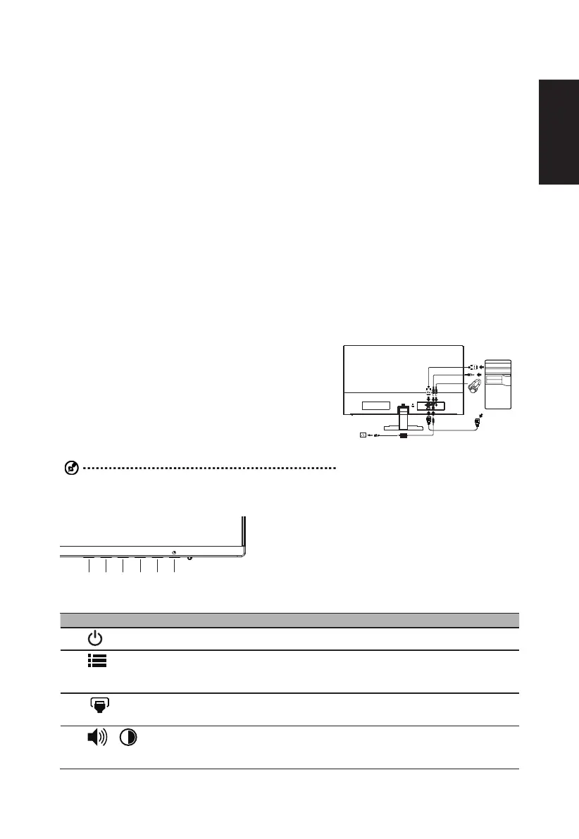 1 Power button/indicator Turns the monitor on/off. Blue indicates power on. Blinking blue indicates