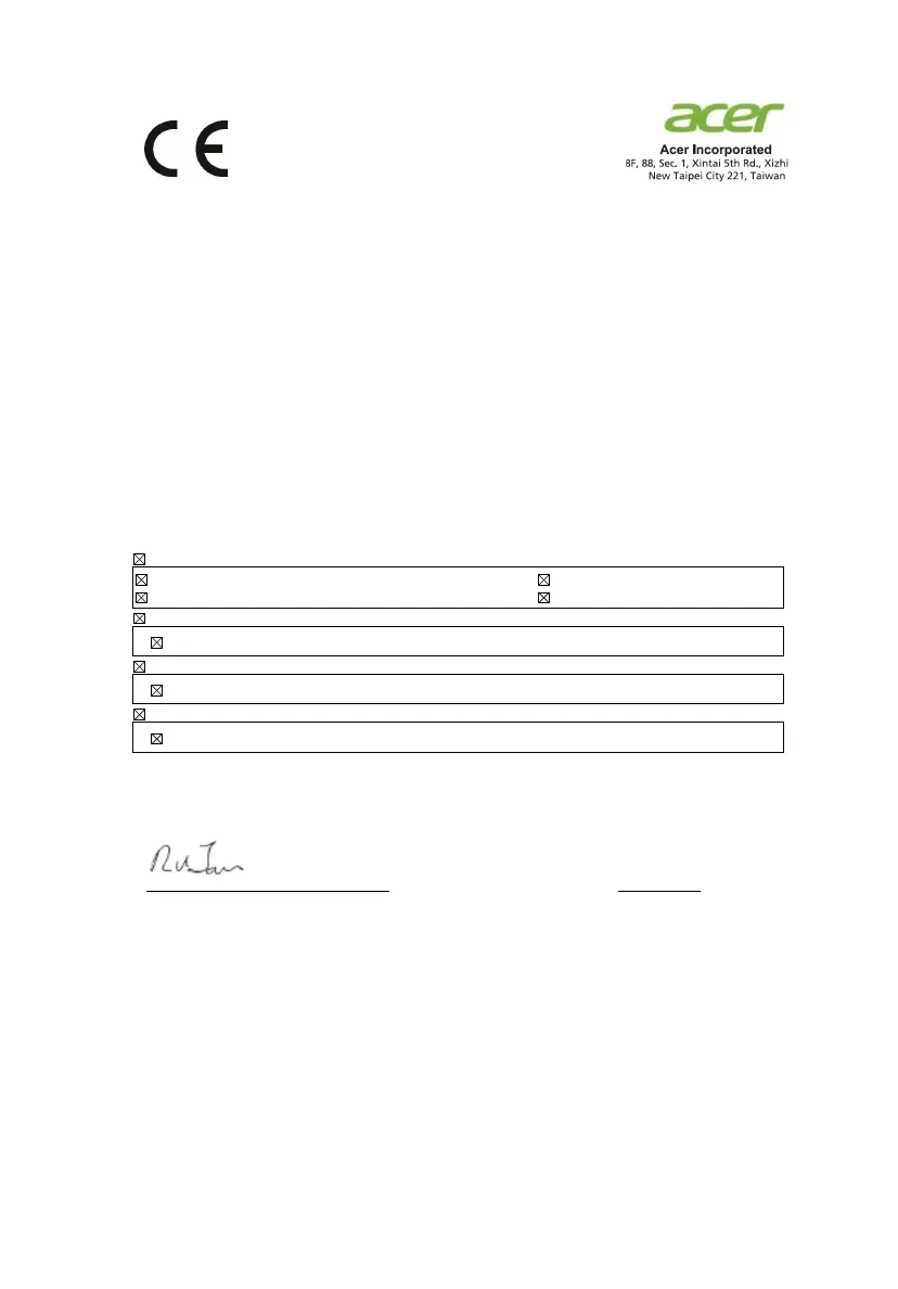 We, Acer Incorporated, hereby declare under our sole responsibility that the product described above is in