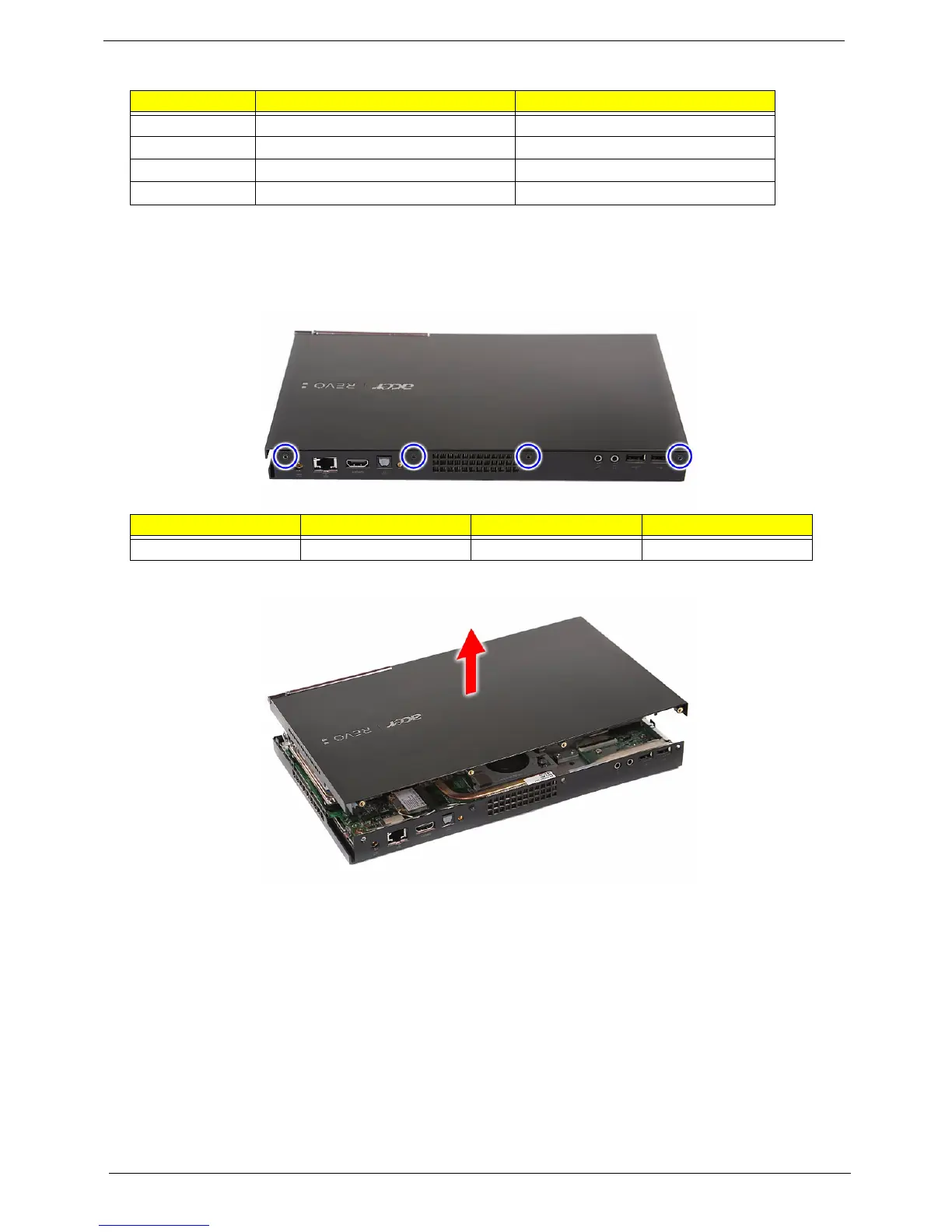 2. Remove the four screws (A) securing the top cover.