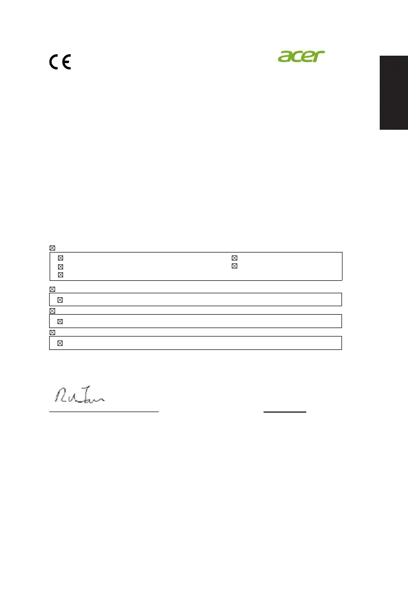 Acer Incorporated, dichiara sotto la propria responsabilità che il prodotto sopra descritto è conforme alle