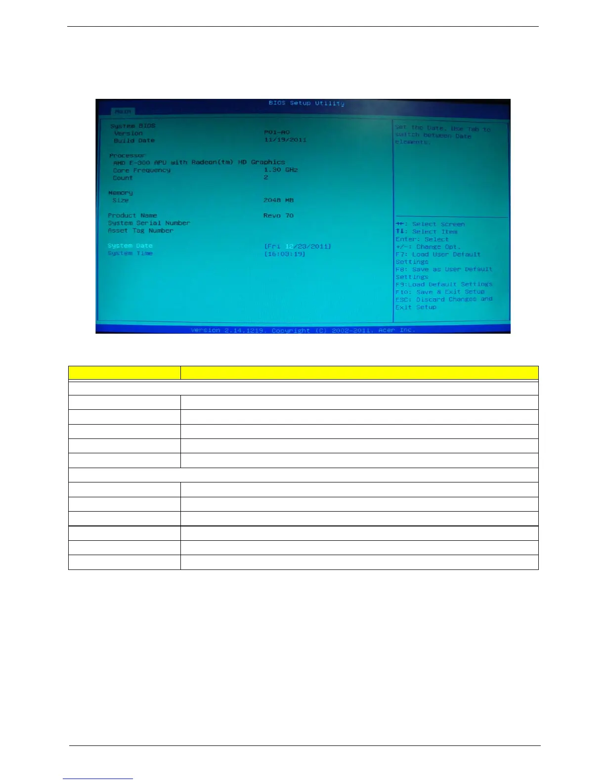 Build Date Date when the BIOS setup utility was built