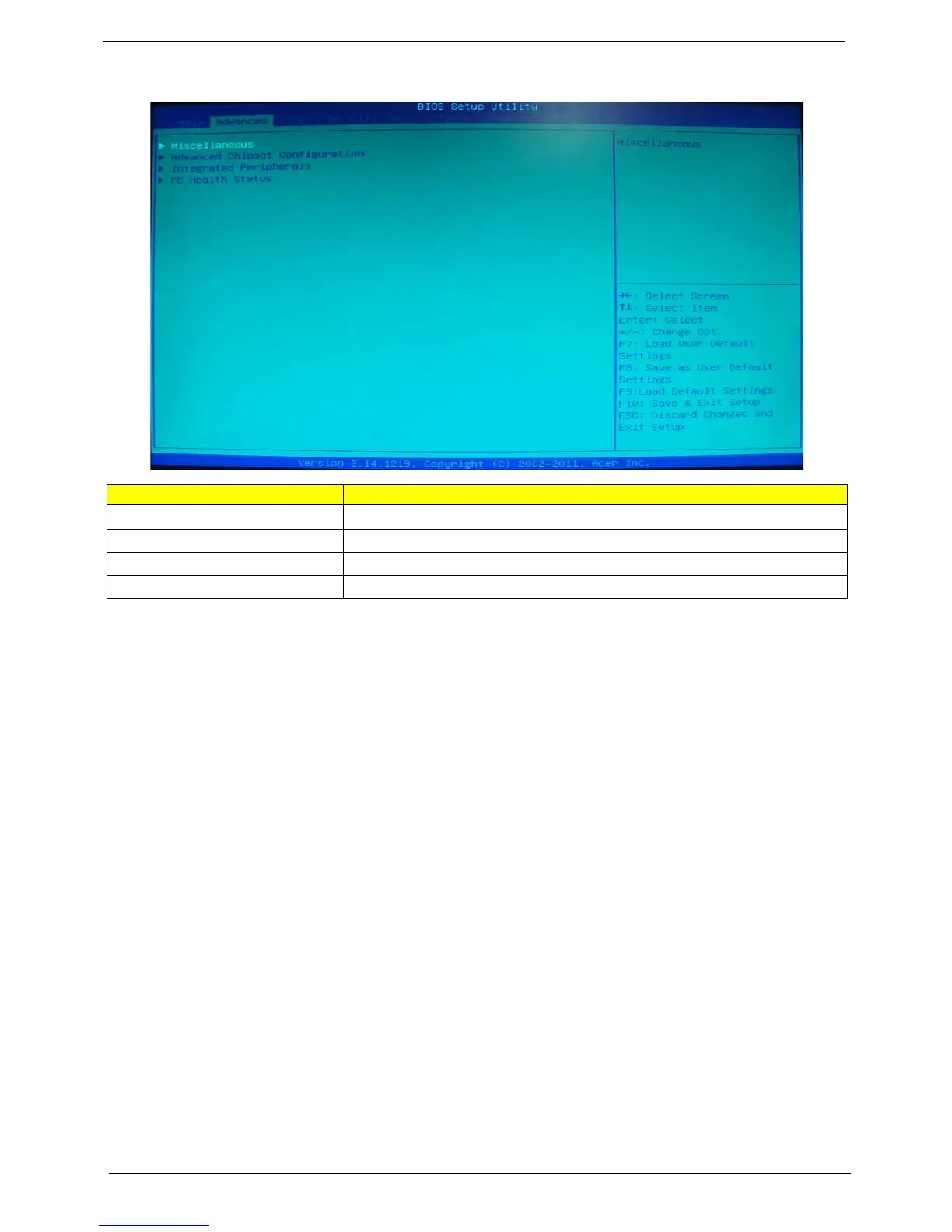 Miscellaneous Press Enter to access the Miscellaneous submenu