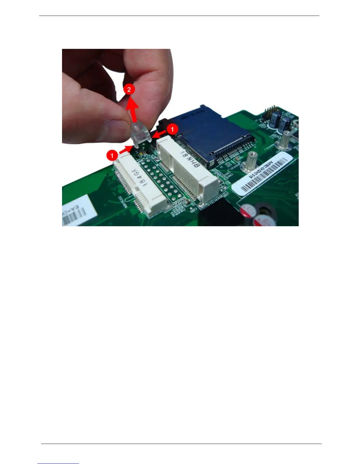 1. Release the two locking tabs (1) and gently pull the LED lens out (2).