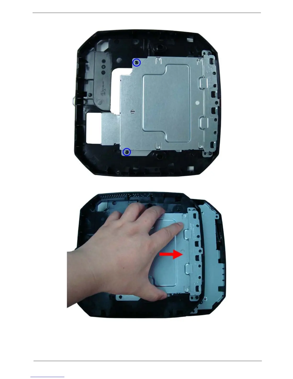 4. Secure the ODD bracket to the ODD base cover using two screws.