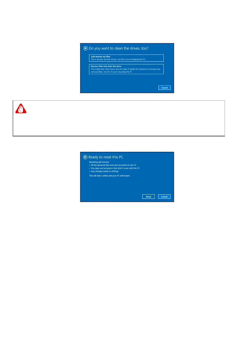 Selecting "Remove files and clean the drive" will remove all of your