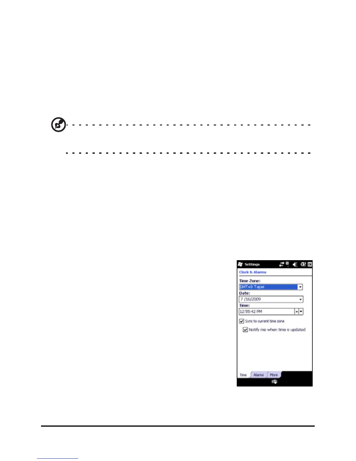 1. Tap Start > Settings > Clock & Alarms >