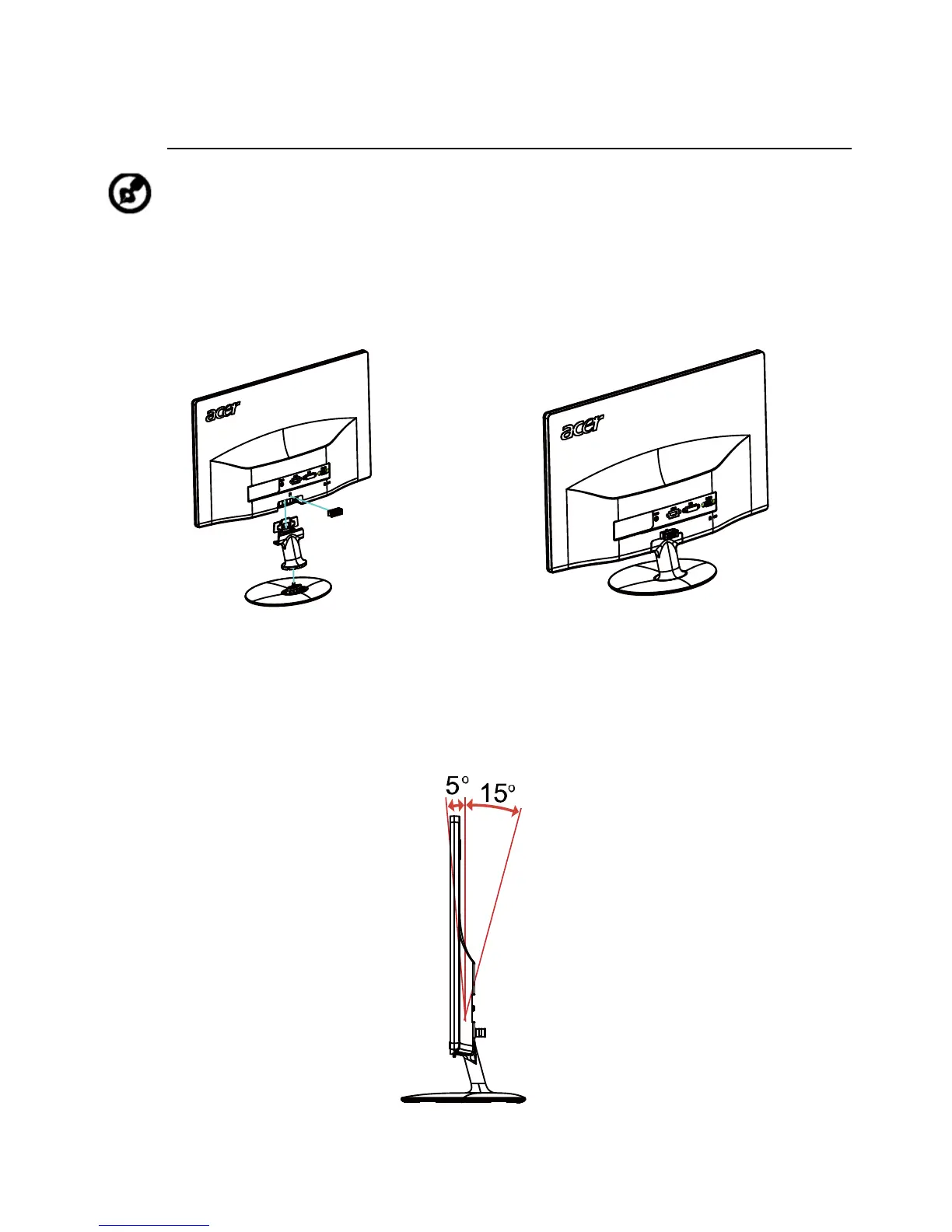 The monitor can be adjusted to 15 degrees up or 5 degrees down as indicated