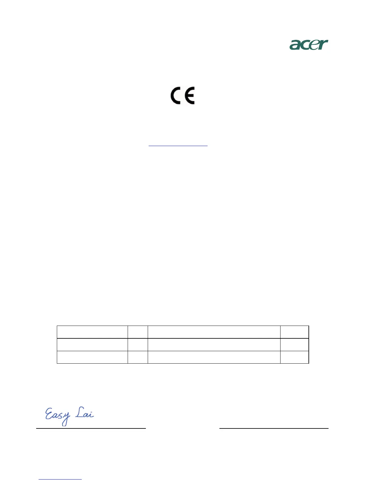 Contact Person: Mr. Easy Lai, E-mail: easy_lai@acer.com.tw