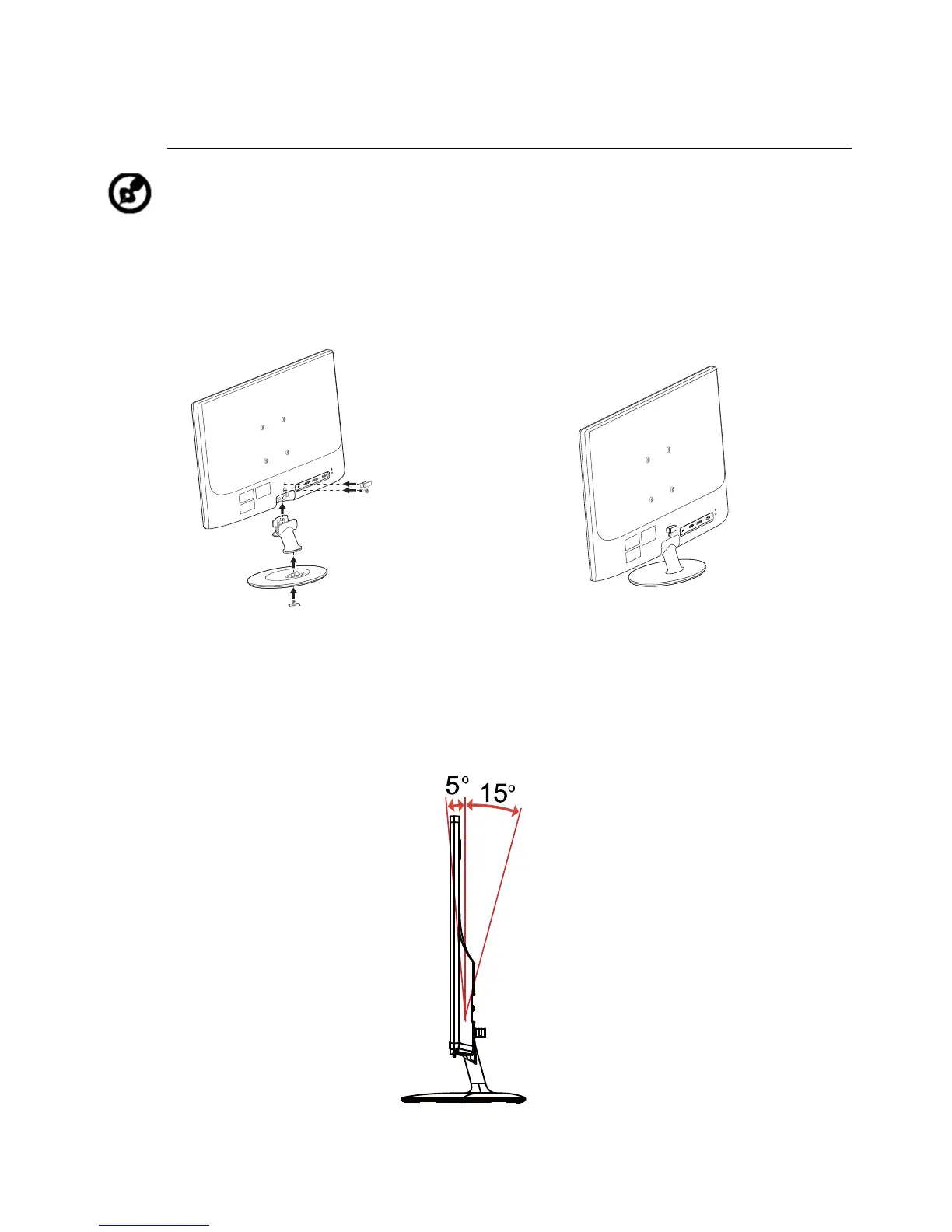 The monitor can be adjusted to 15 degrees up or 5 degrees down as indicated