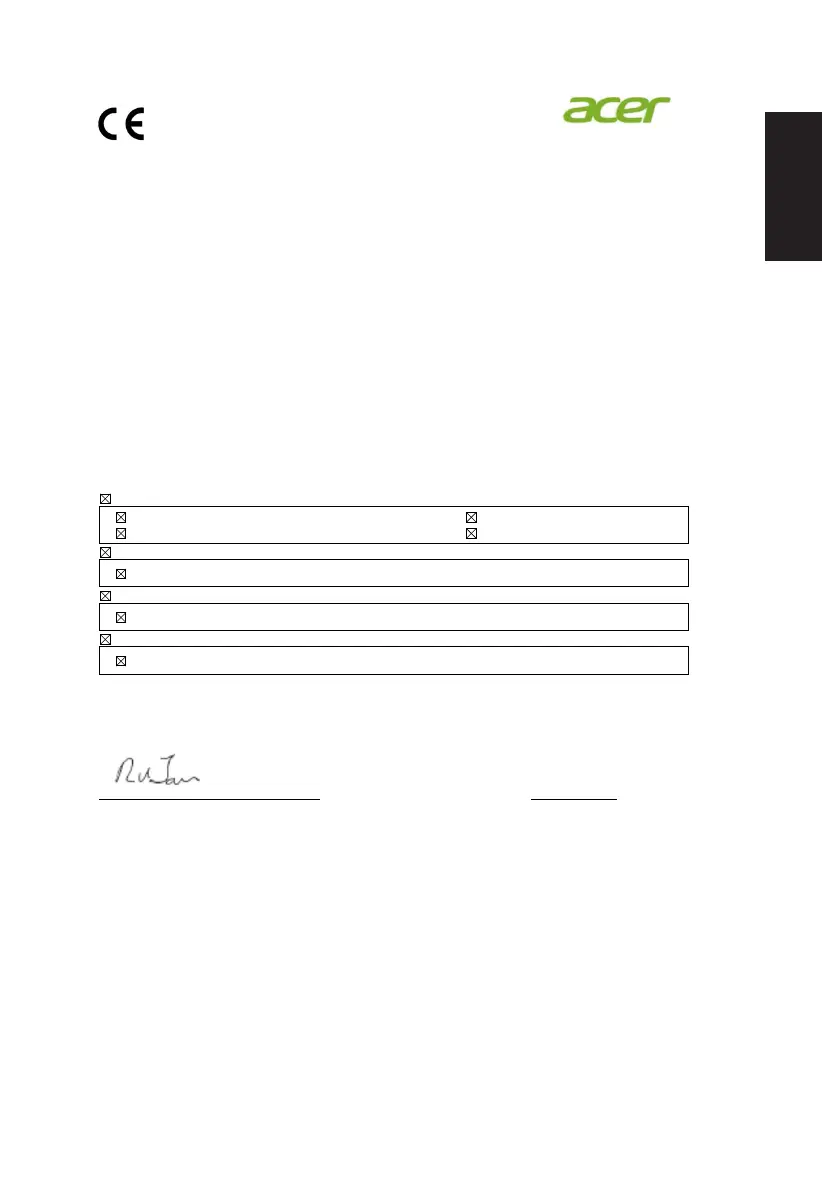 Acer Incorporated, dichiara sotto la propria responsabilità che il prodotto sopra descritto è conforme alle