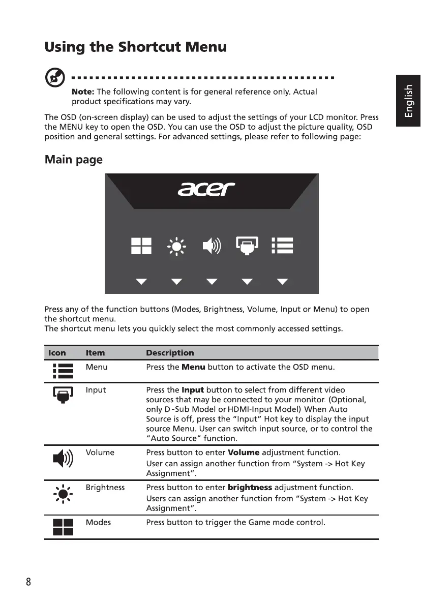 Acer SB220Q - Using the Shortcut Menu