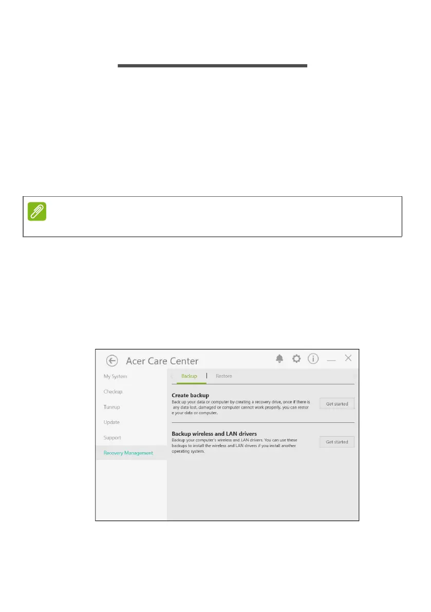 Acer provides Acer Care Center, which allows you to reset your PC,