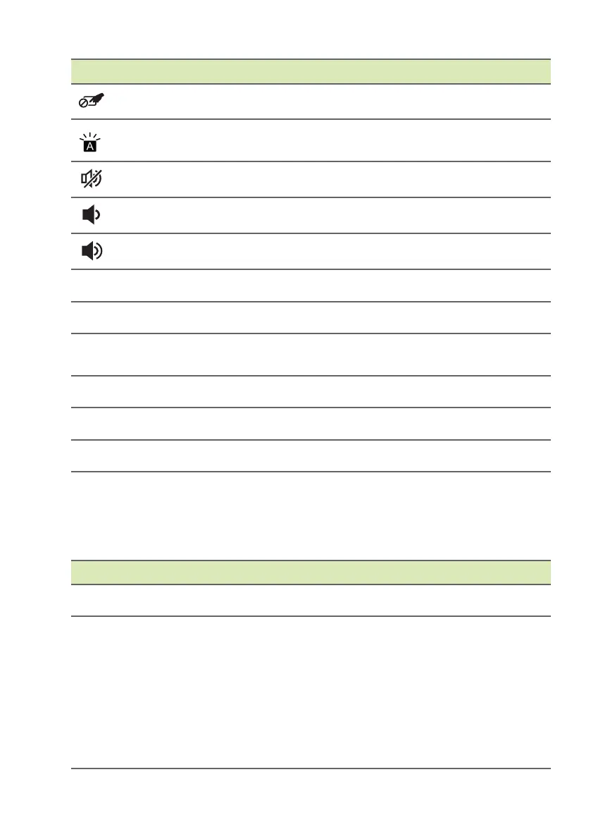 Fn + F1-F12 Function keys Activates the F1 to F12 keys.