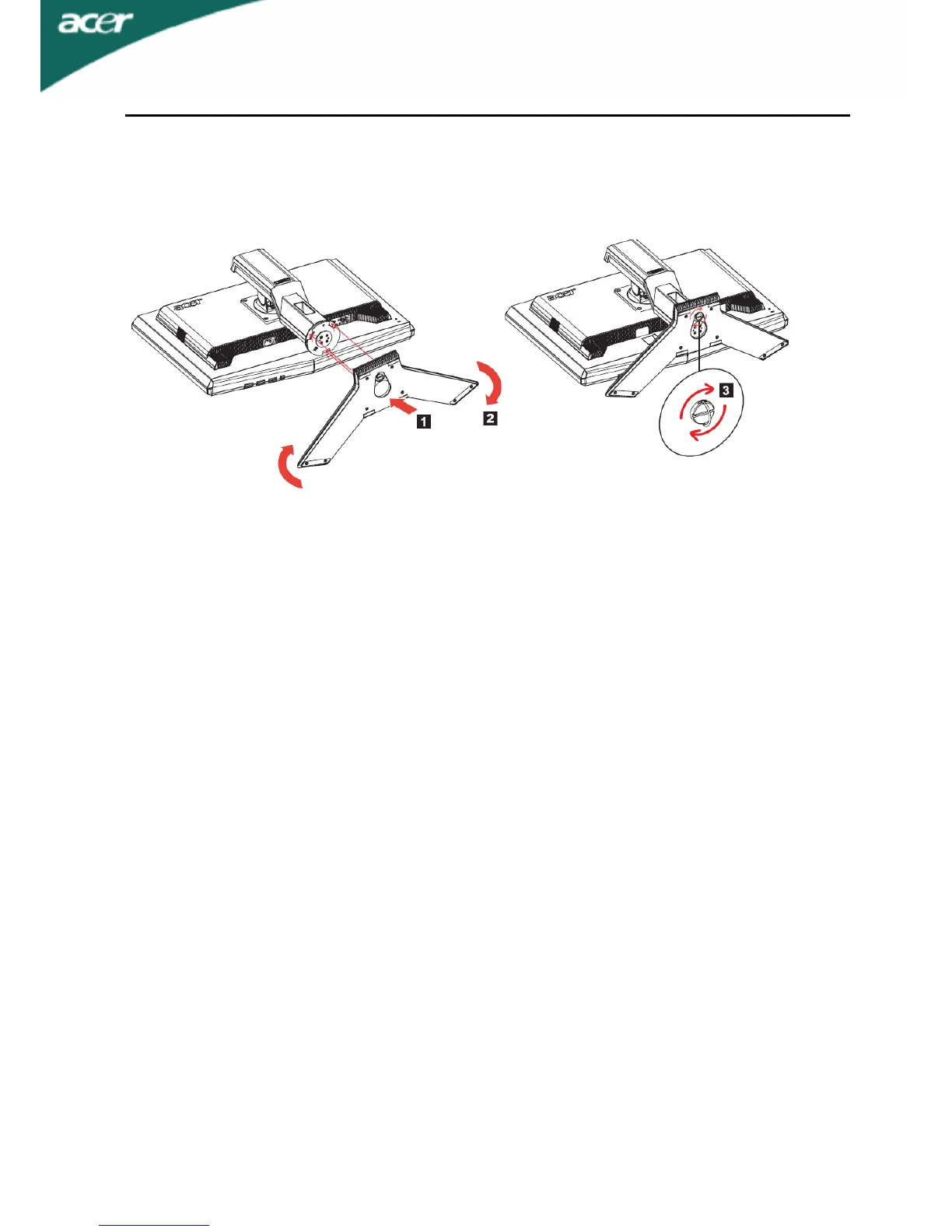 Align the base with the stand and push the base towards the top ofthe monitor, and then rotate the base