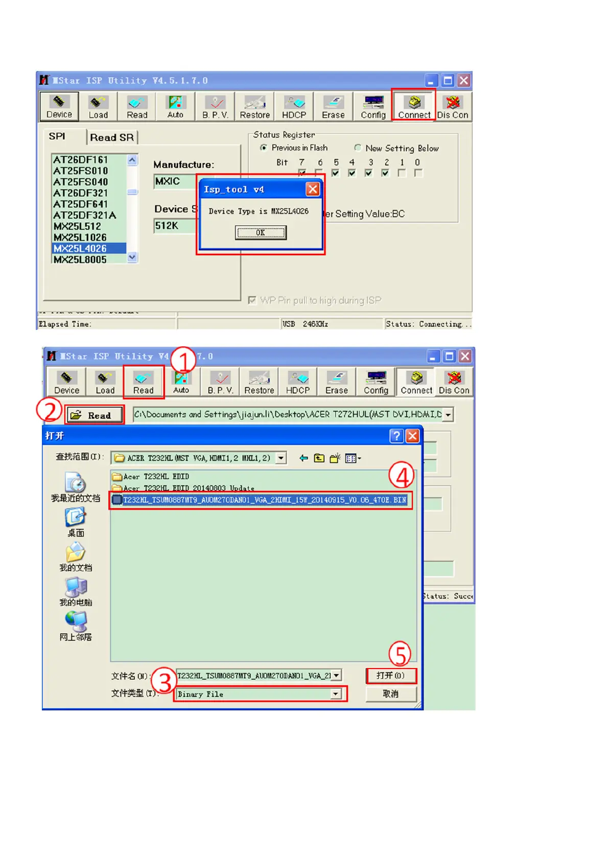 S4. Connect to the monitor. Click “Connect”. If the tool communicate with monitor successfully, the tool will detect the