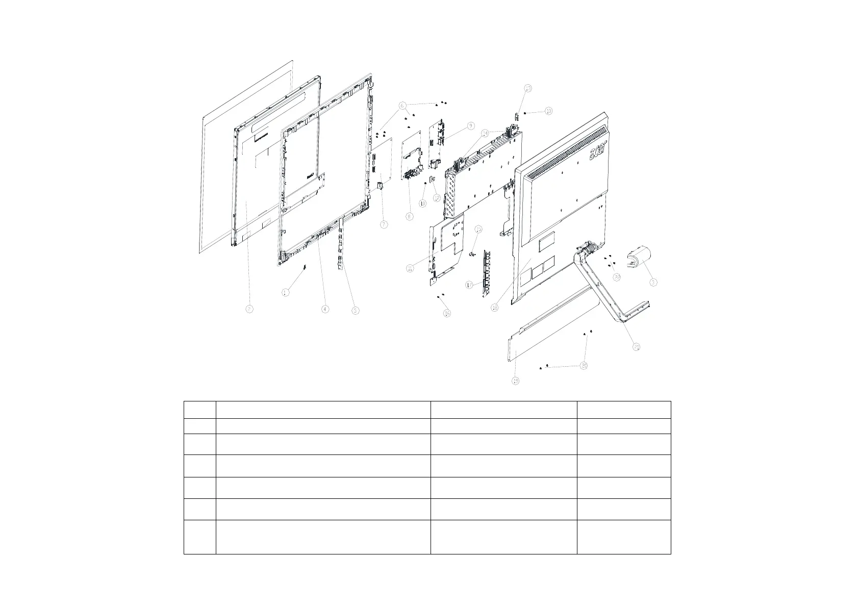 Item Description TPV Part No. ACER Part No.