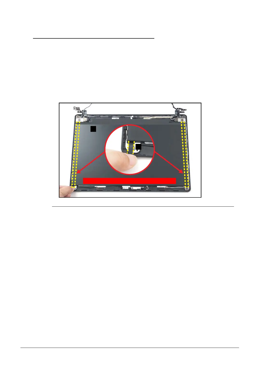 1. Pry slightly to access the double-sided mounting tape (A) underneath the LCD panel