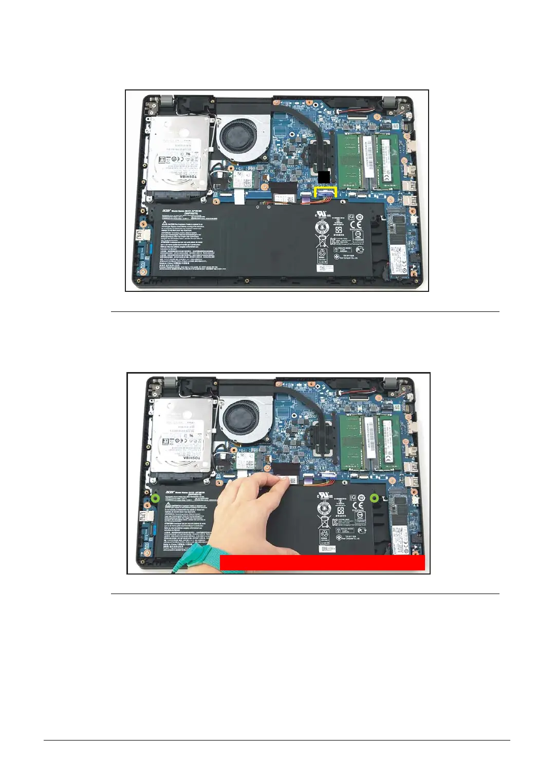 4. Disconnect the battery cable from the mainboard connector (D) (Figure 1-7).