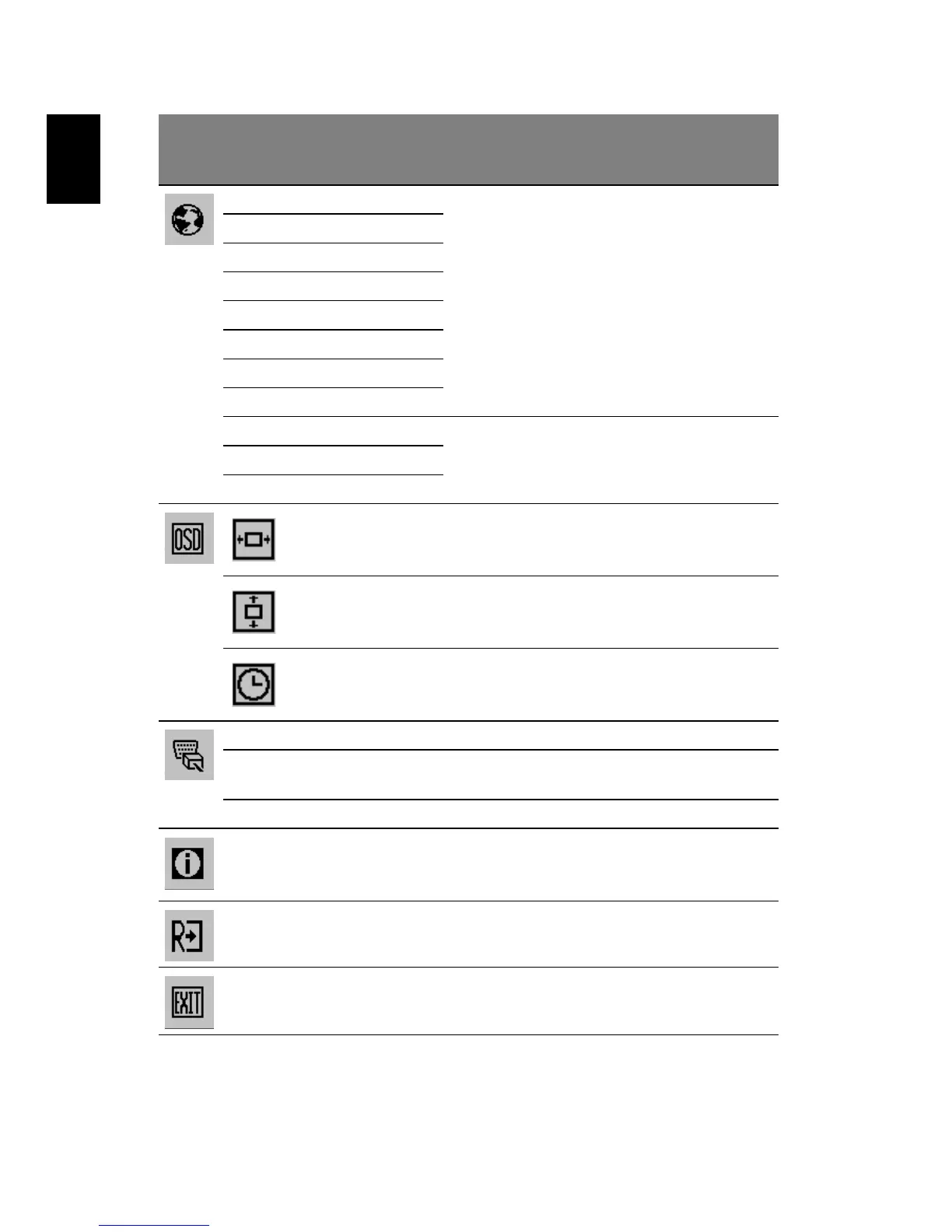 N/A Exit Saves user changes and closes the OSD.