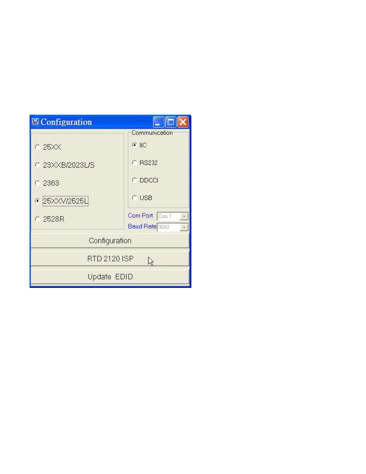 Press “RTD 2120 ISP” button to execute firmware program application.