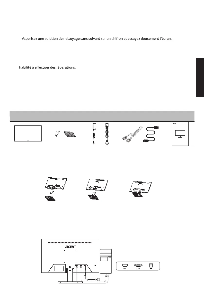 extrémité à la prise d'entrée VGA/HDMI de la carte graphique de votre ordinateur. Serrez les vis du connecteur