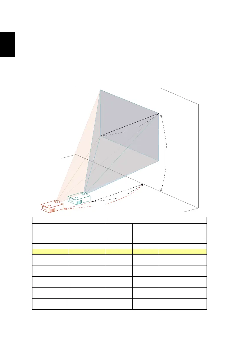 To obtain an image size of 60" set the projector at a distance 1.8 m and 2.9 m