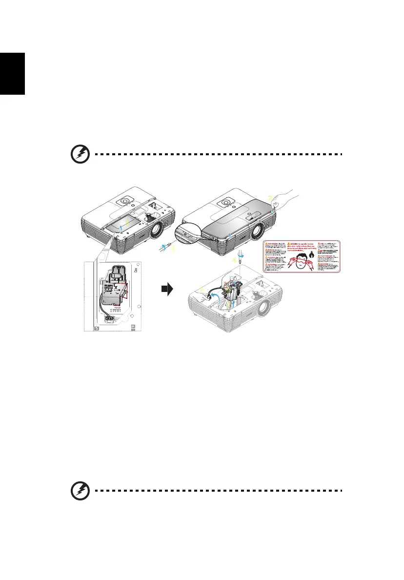 To replace the lamp module, use a new lamp and reverse the above steps.