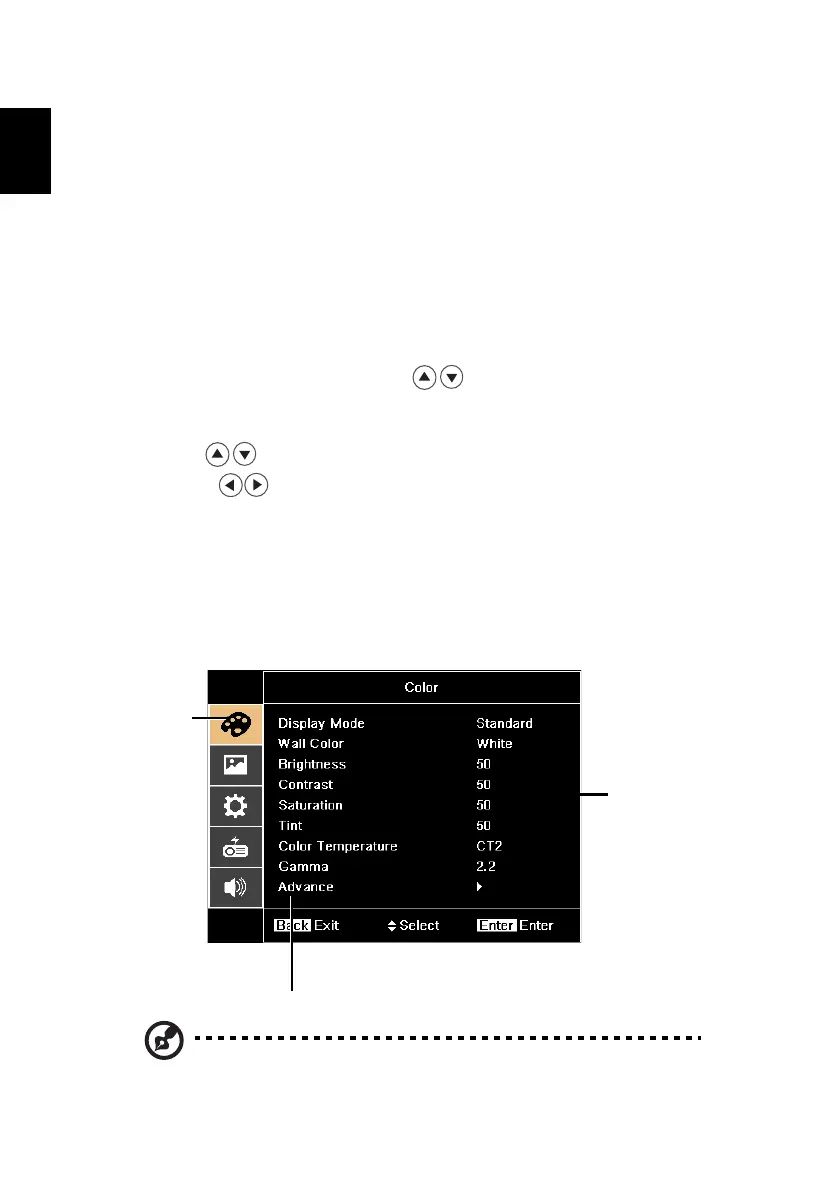 • To exit OSD, press "BACK" on the remote control or control panel. The