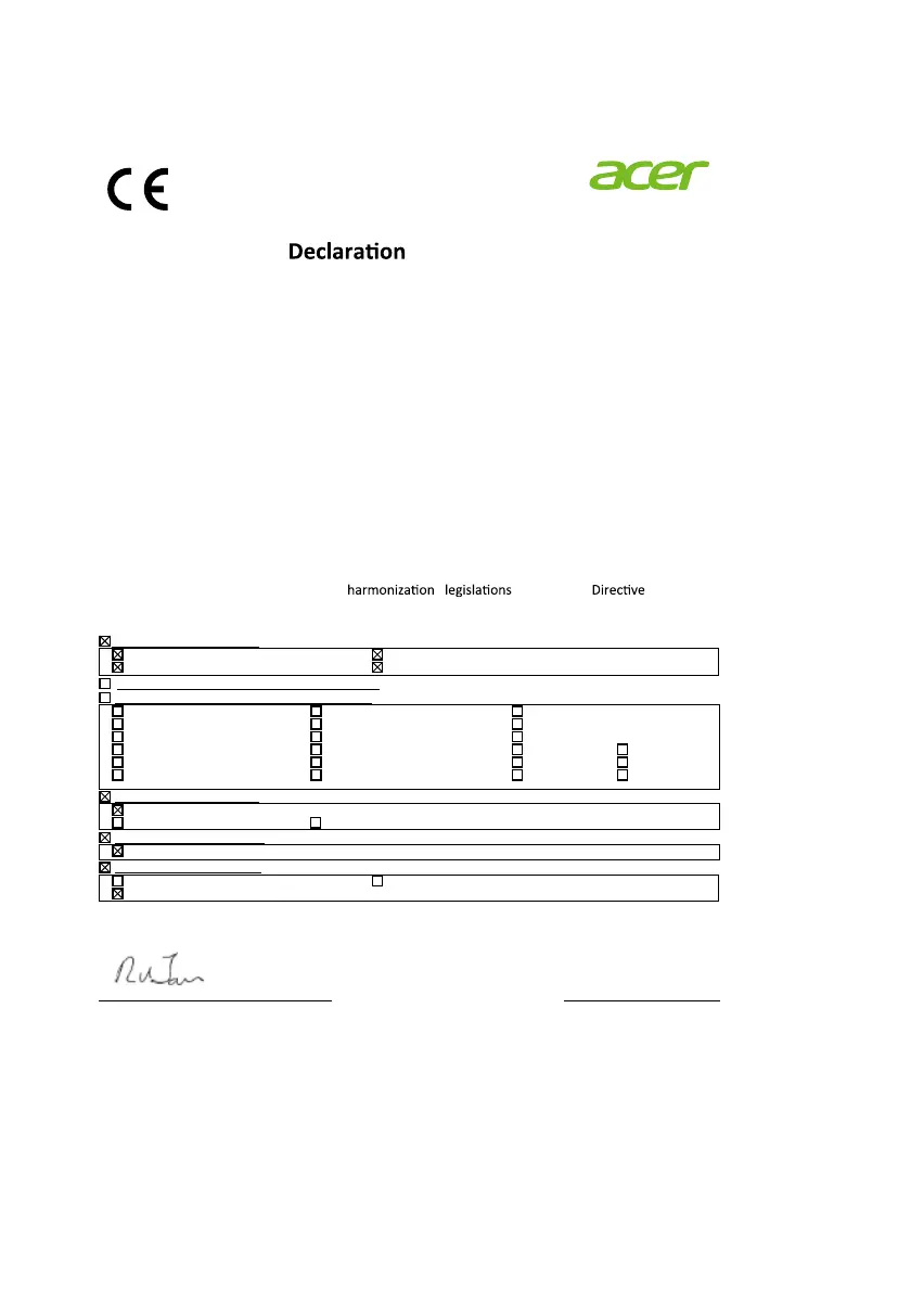 We, Acer Incorporated, hereby declare under our sole responsibility that the product described above is in