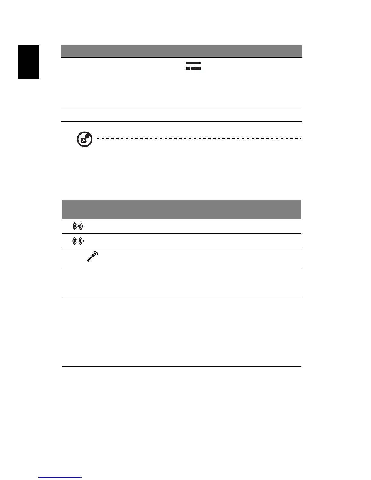 下の表は、背面パネルのオーディオ ジャックの機能を示しています ( 特定モデル