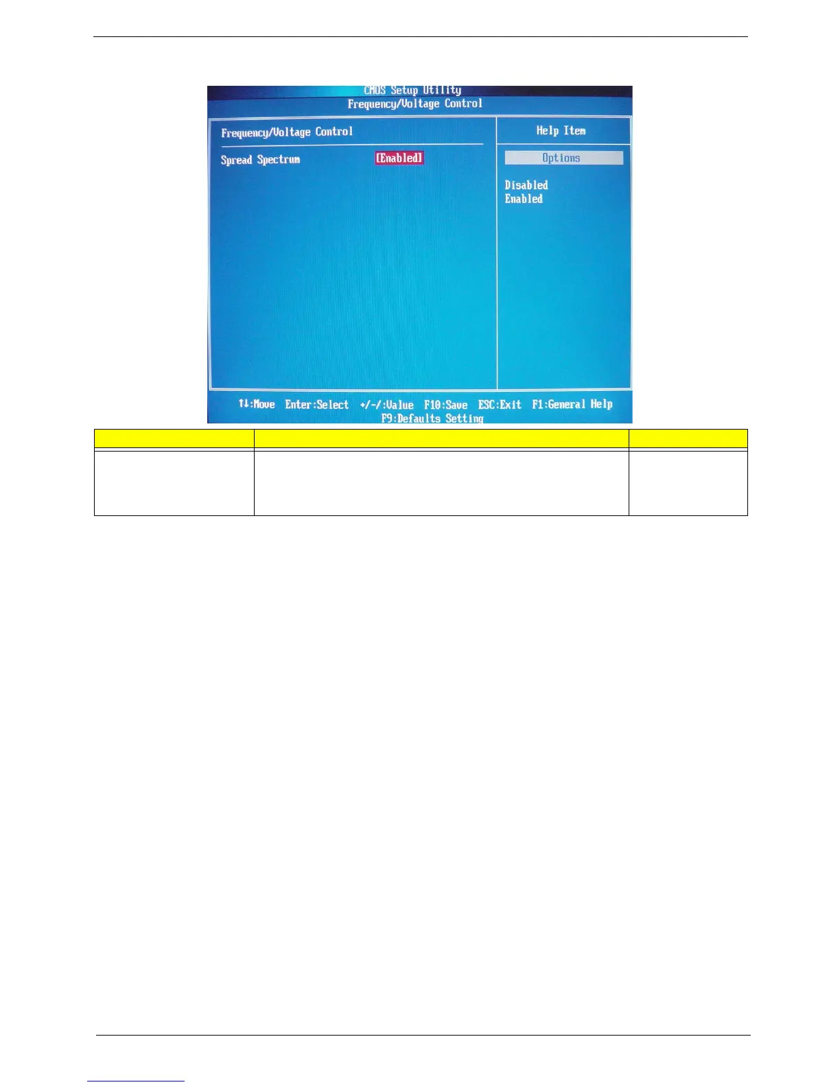 Spread Spectrum Enables or disables the reduction of the mainboard’s EMI.