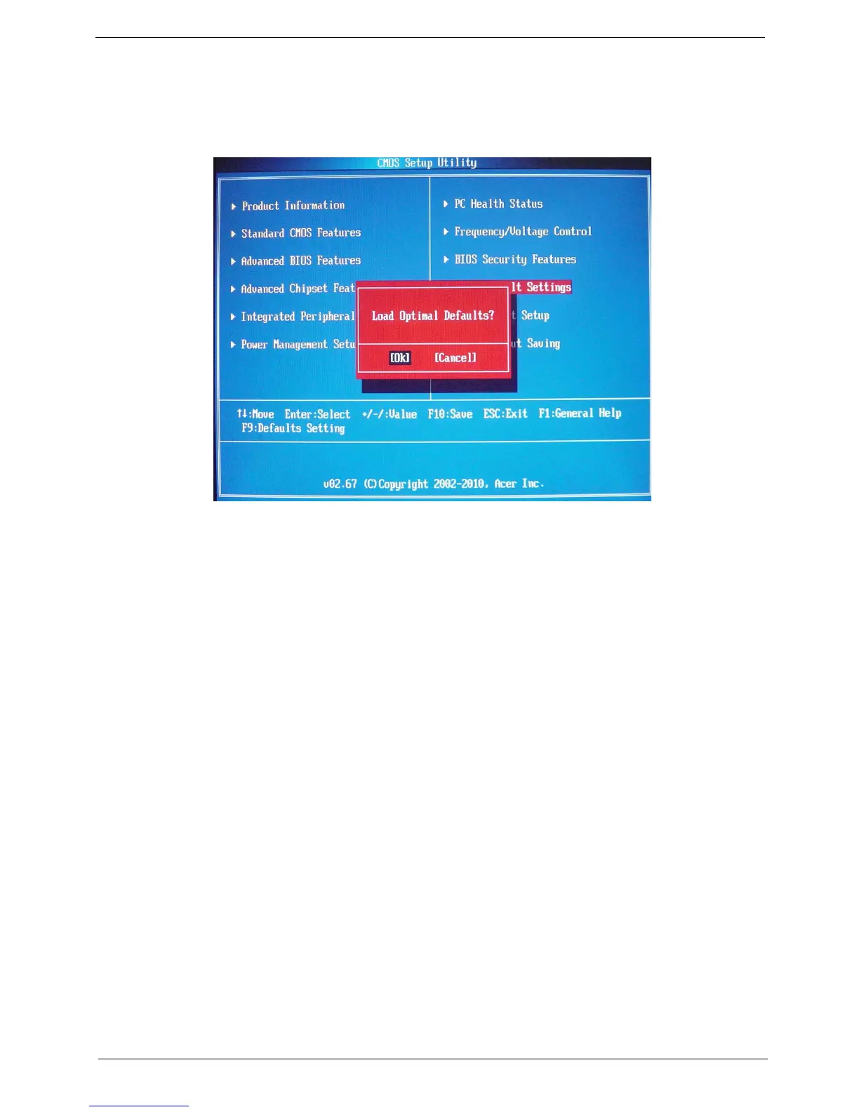 The Load Default Settings menu allows you to load the default settings for all BIOS setup parameters. Setup