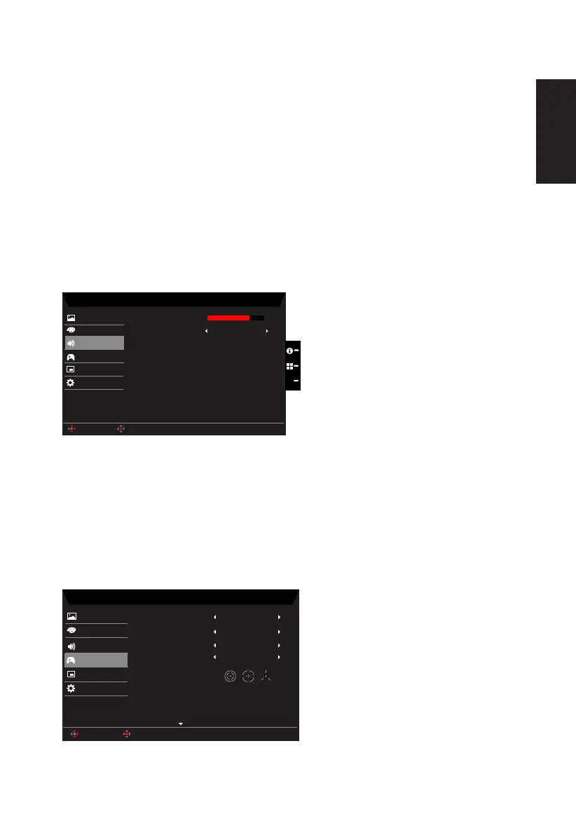 2. Toggle the joystick to the up or down to select Audio from the OSD.Then toggle to the