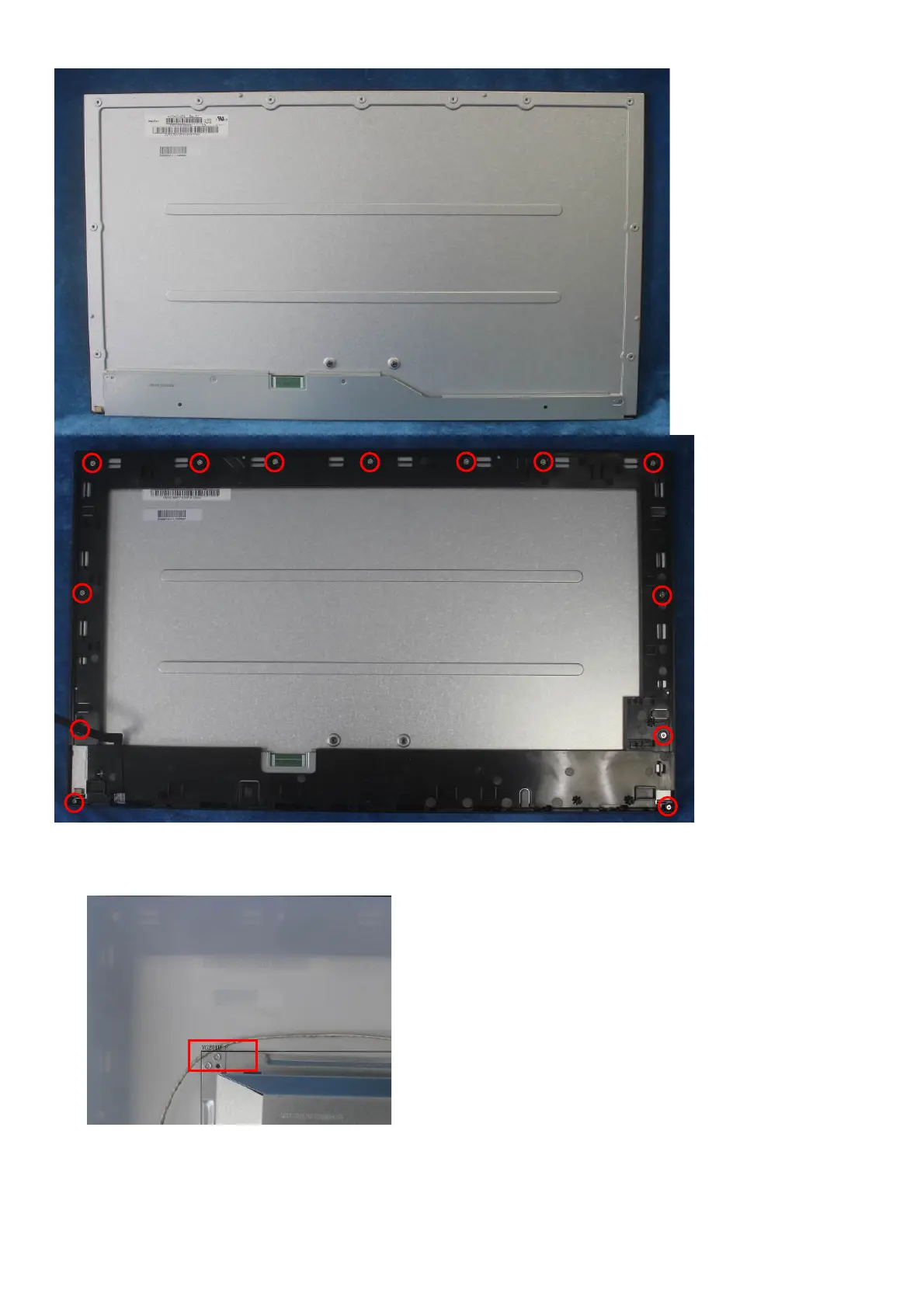 removing the Mylar and pasting the tapes. Connect the LVDS cable (main board to panel), lamp power cable
