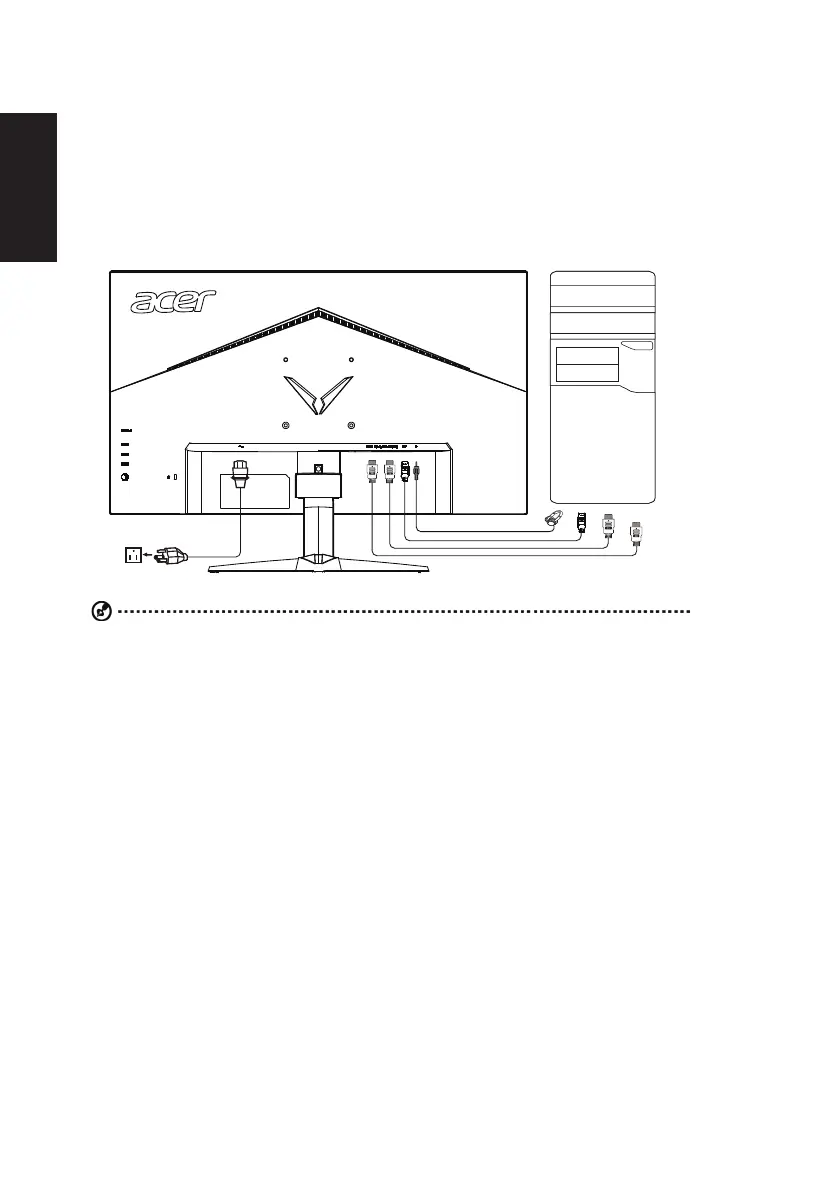 2. Connect the signal cable to the HDMI (optional) and /or DP (optional) input socket of the monitor, and the HDMI