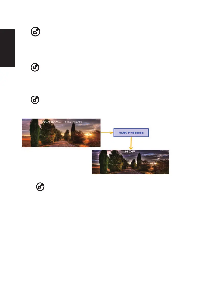 Note: 1. When HDR = Auto, the Modes will also be automatically set to “HDR”.