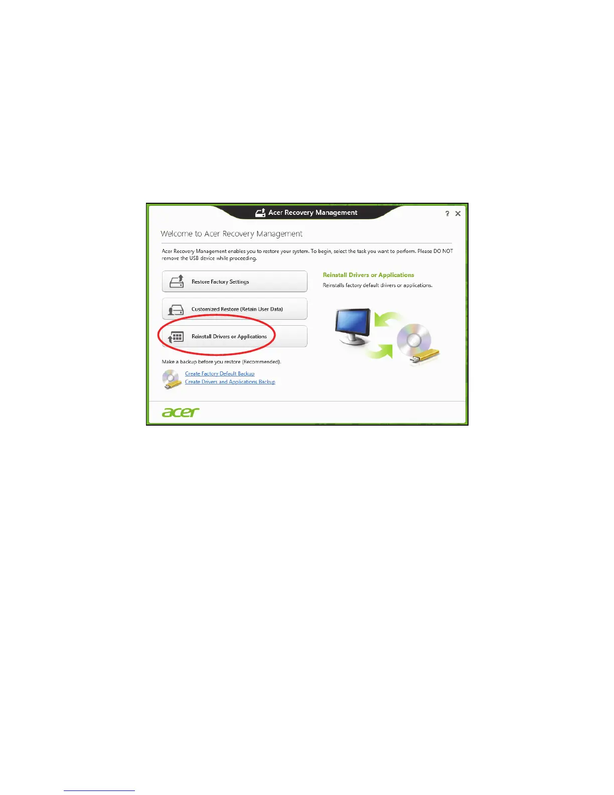 Click Reinstall Drivers or Applications.