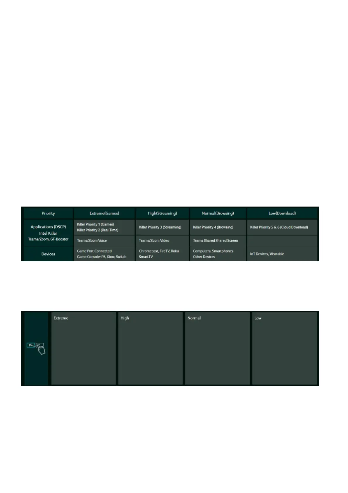 into four priority levels: Extreme (Games), High (Streaming), Normal (Browsing),