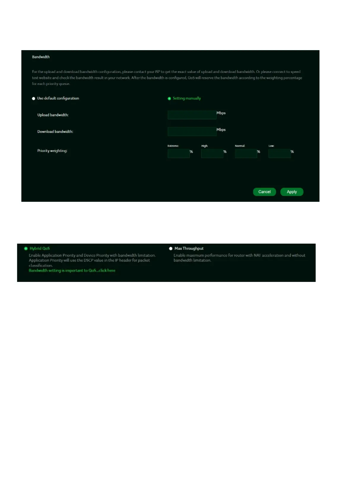 You may select “use default configuration” and click on “Apply bandwidth”. you can