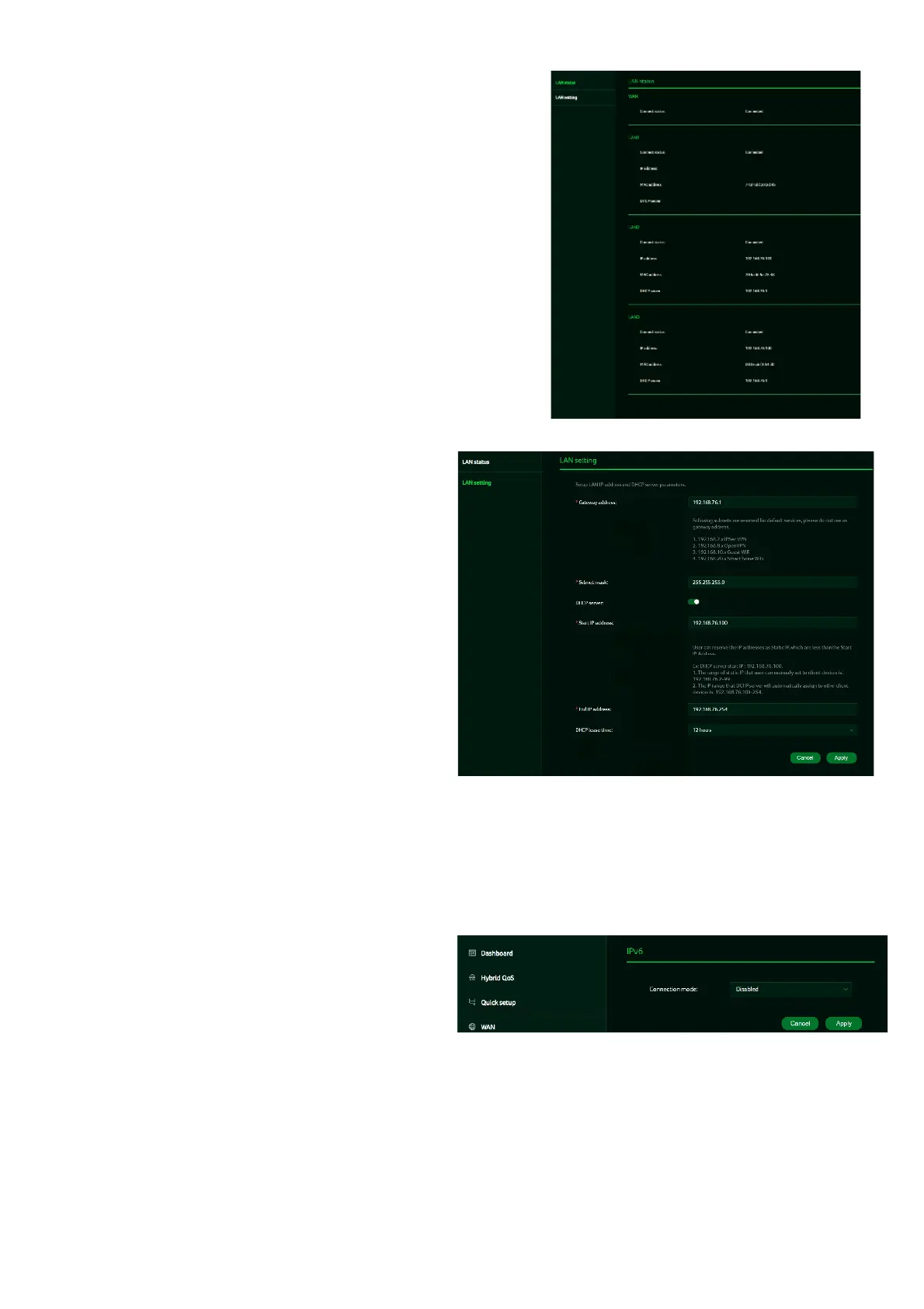 LAN IP gateway address and toggle