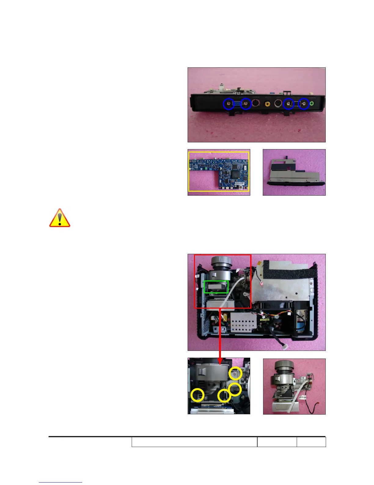 7. Unscrew 4 hex screws (as blue circle).