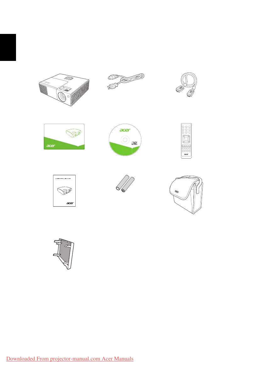 This projector comes with all the items shown below. Check to make sure you