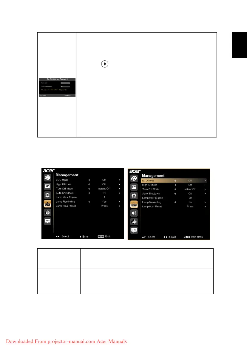• Press to change "Administrator Password".